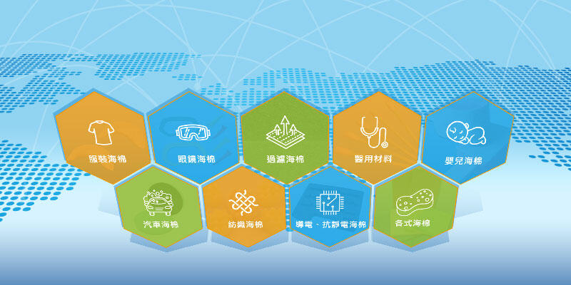 營業項目:服裝用海綿、汽車用海綿、醫療用海綿、過濾用海綿、嬰兒用海綿、眼鏡用海綿、包裝用海綿、抗靜電海綿、其它海綿